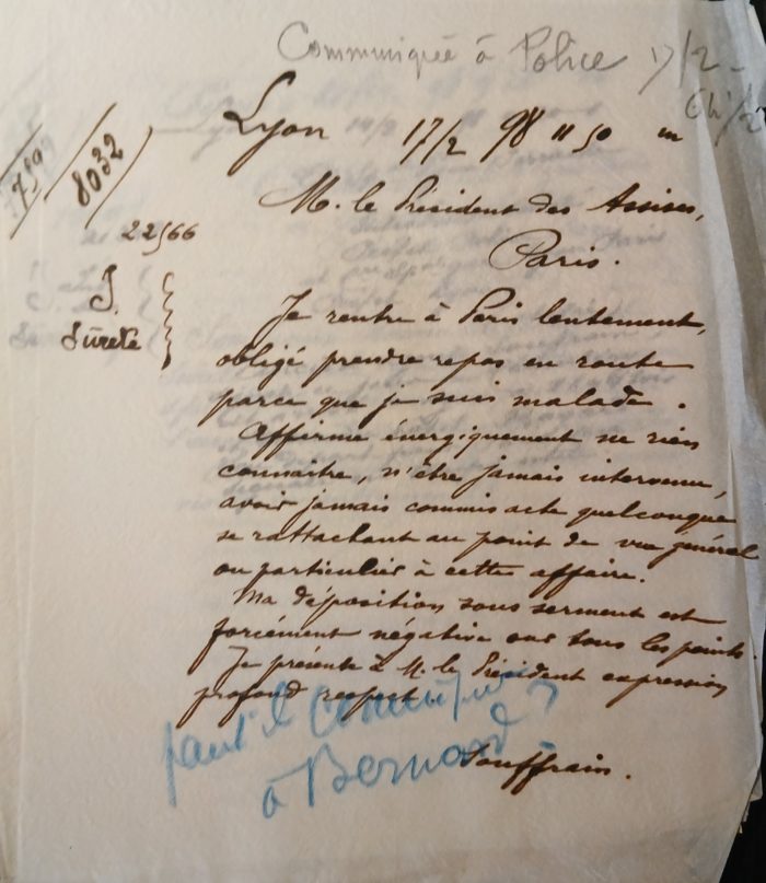 Je n’ai jamais détourné aucune pièce du Ministère de la Guerre et je n’ai jamais composé de dossier clandestin ni pour moi ni pour personne.